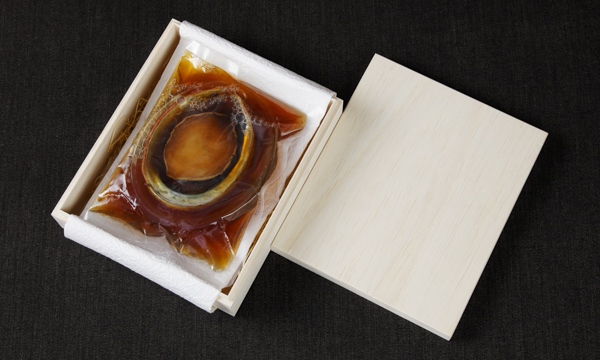 内容量:肝付き鮑煮貝 大サイズ(180g~209g)×1個 同梱物:白木箱、風呂敷、手提げ袋 原産国:チリ産
